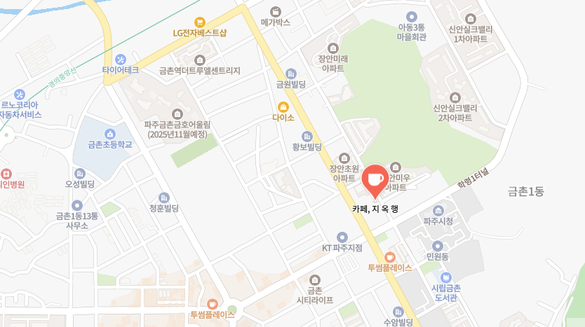 카페 '지옥행'은 파주 금촌에 위치해 있어요. 이곳은 최근에 오픈한 신상 카페로, 많은 사람들의 관심을 받고 있답니다.