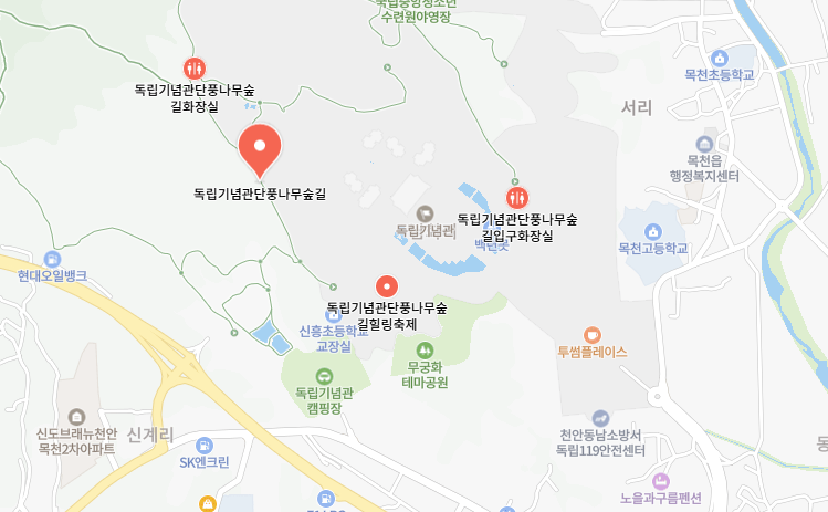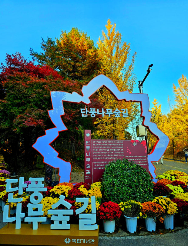 단풍나무숲길은 독립기념관 내에 위치한 약 3.2km의 산책로예요. 이 길은 가을이 되면 특히 아름다워지는데, 붉고 노란 단풍이 길을 따라 펼쳐져 마치 그림 같은 풍경을 만들어내죠. 이곳을 걷다 보면 자연의 아름다움과 함께 역사적인 장소에서 느끼는 감동이 더해져 정말 특별한 경험이 될 거예요.
