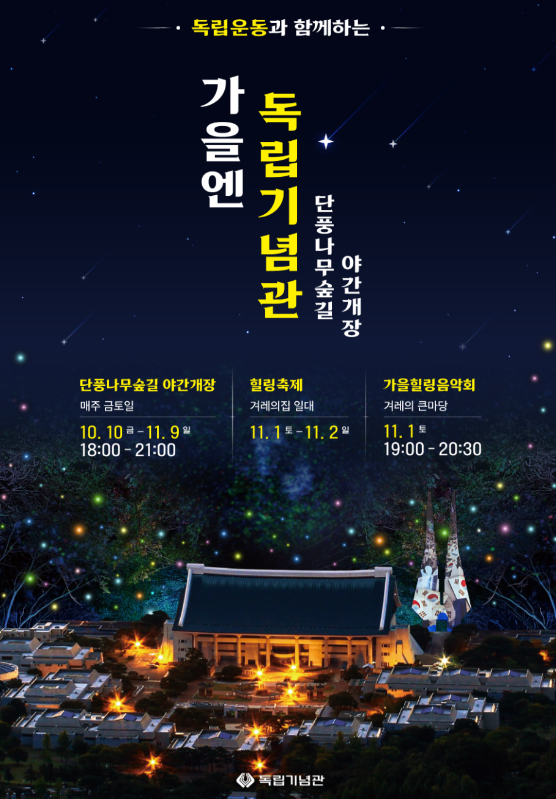 ✅ 3.2Km의 천안 독립기념관 단풍나무숲길, 야간개장까지