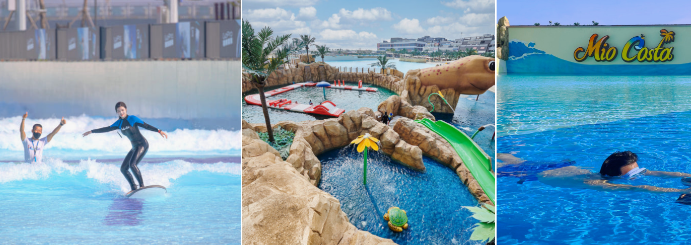웨이브 파크는 서핑, 다이빙, 물놀이 등 다양한 해양 스포츠를 즐길 수 있는 복합 레저 시설이에요. 이곳은 특히 인공 파도를 만들어 서핑을 즐길 수 있는 공간으로 유명하답니다.