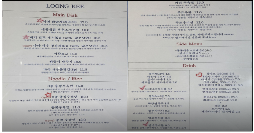 룽키의 메뉴는 전반적으로 홍콩식 중식 요리를 기반으로 구성되어 있어요. 특히, 3종 충칭우육면과 홍콩우육면은 각각 다른 스타일의 마라 맛을 보여주고, 닭날개튀김은 바삭함과 마라 향신료의 조화가 정말 맛있어요. 완탕면은 깔끔한 육수와 쫄깃한 면발이 조화를 이루면서 부담 없이 먹기 좋아요.