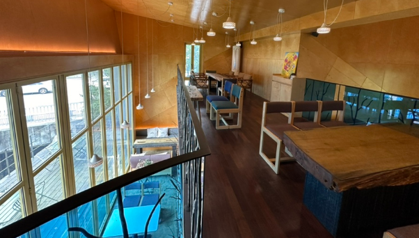 따뜻한 화로가 있어 겨울철에도 따뜻하게 지낼 수 있답니다. 대형 스크린에서는 영화가 상영되기도 해서, 친구들과 함께 영화를 보며 차 한 잔의 여유를 즐길 수 있어요. 내부 인테리어는 자연 친화적이고 편안한 느낌을 주어, 오랜 시간 머물고 싶어지는 공간이에요.