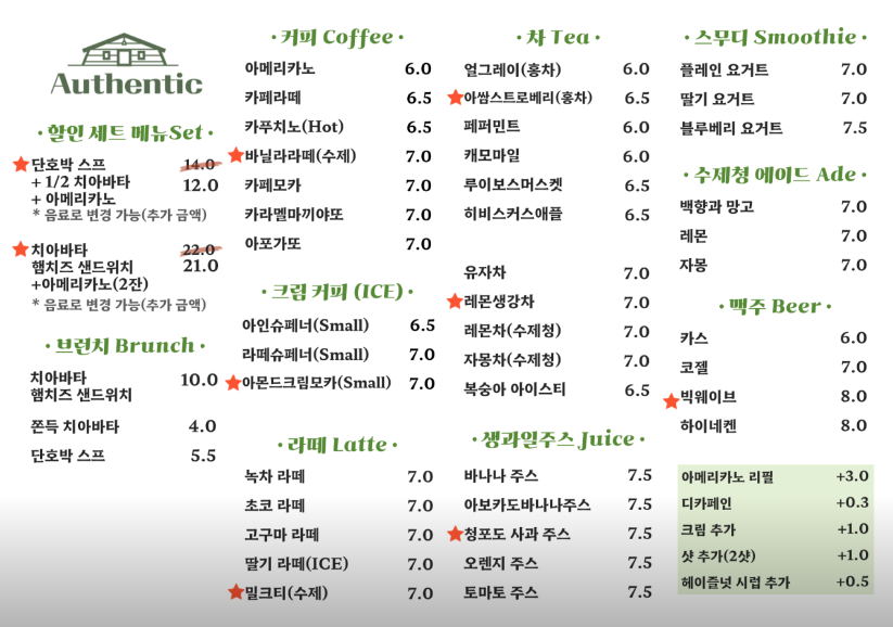 어센틱의 메뉴는 다양하고 맛있어요. 특히, 가을에 어울리는 따뜻한 음료와 디저트를 추천해요.