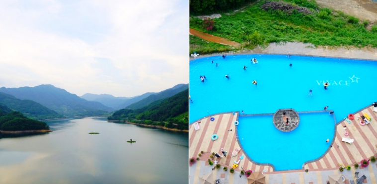 이곳은 국내 최대 규모 100m 인피니티 풀에서 보는 하동의 가장 멋진 지리산 뷰와 미끄럼틀도 있고 튜브, 구명조끼까지 대여할 수 있어요. 그리고 수심이 낮은 곳부터 깊은 곳까지 있어서 아이들과 함께 즐기기에도 좋답니다.