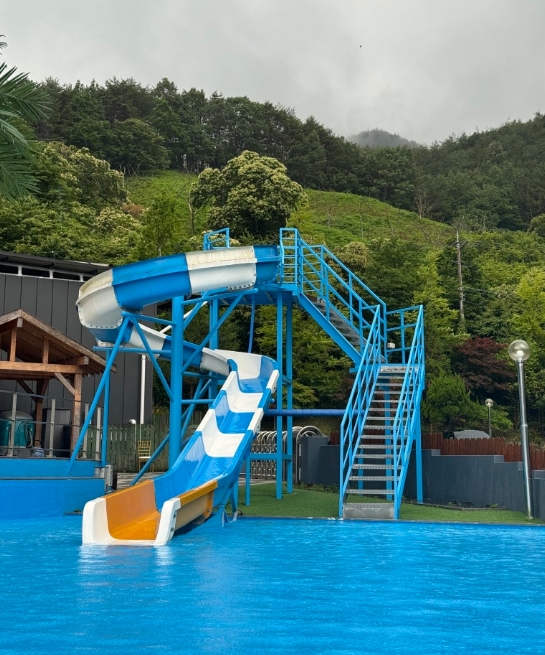 이곳은 국내 최대 규모 100m 인피니티 풀에서 보는 하동의 가장 멋진 지리산 뷰와 미끄럼틀도 있고 튜브, 구명조끼까지 대여할 수 있어요. 그리고 수심이 낮은 곳부터 깊은 곳까지 있어서 아이들과 함께 즐기기에도 좋답니다.