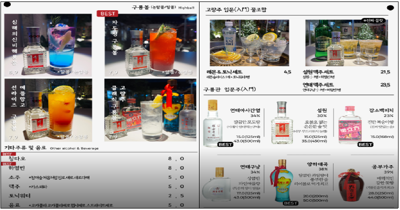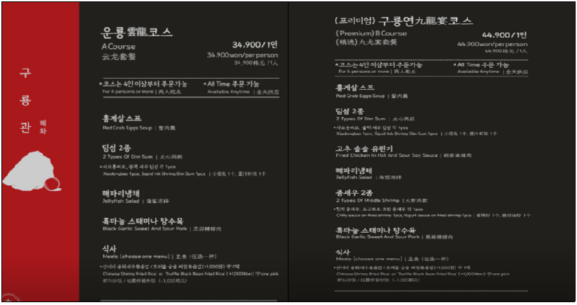 구룡관은 단순한 술집이 아니라 퓨전 중식주점 성격을 갖추고 있어, 음식 메뉴 또한 다양합니다.