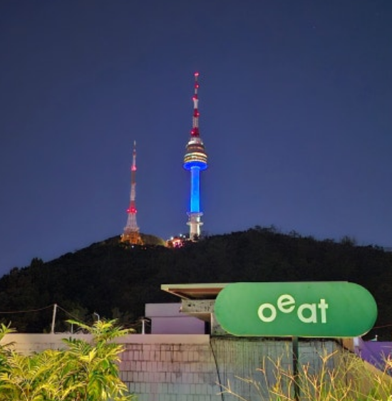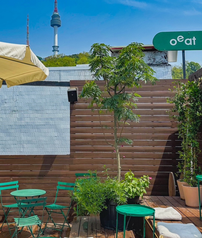 '오일'의 가장 큰 매력은 바로 루프탑이에요! 루프탑에 올라가면 해방촌의 전경과 함께 남산타워까지 한눈에 볼 수 있답니다.