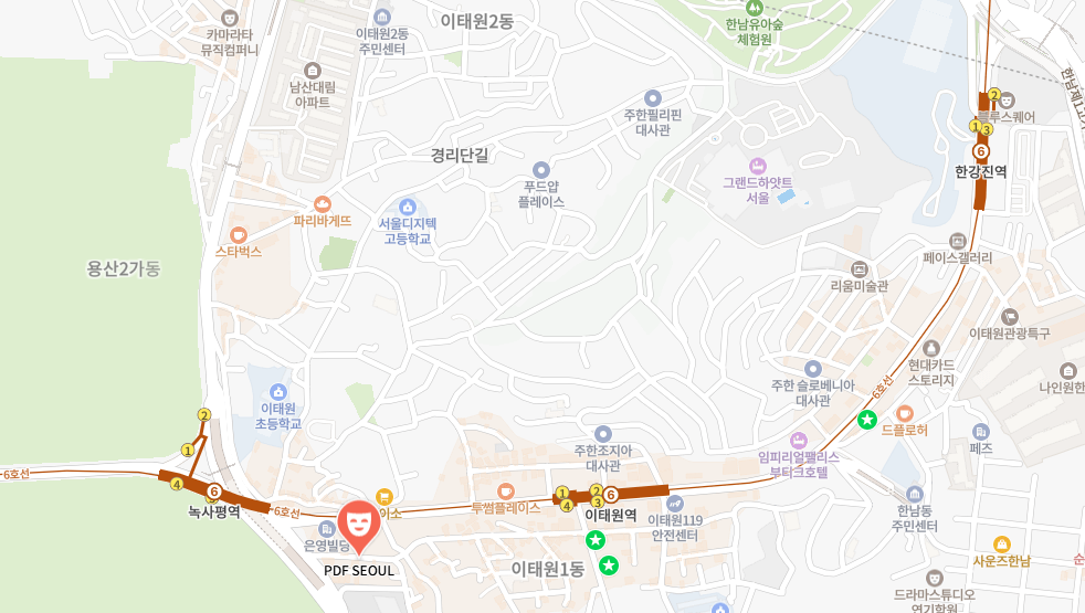 PDF서울은 서울특별시 용산구 녹사평대로 32길 16에 위치해 있어요. 한강진역 1번 출구에서 도보로 약 10분 정도 걸리니, 대중교통 이용하기도 아주 편리하답니다. 주변에는 다양한 음식점과 카페들이 있어, PDF서울을 방문한 후 다른 곳도 함께 즐기기 좋죠.